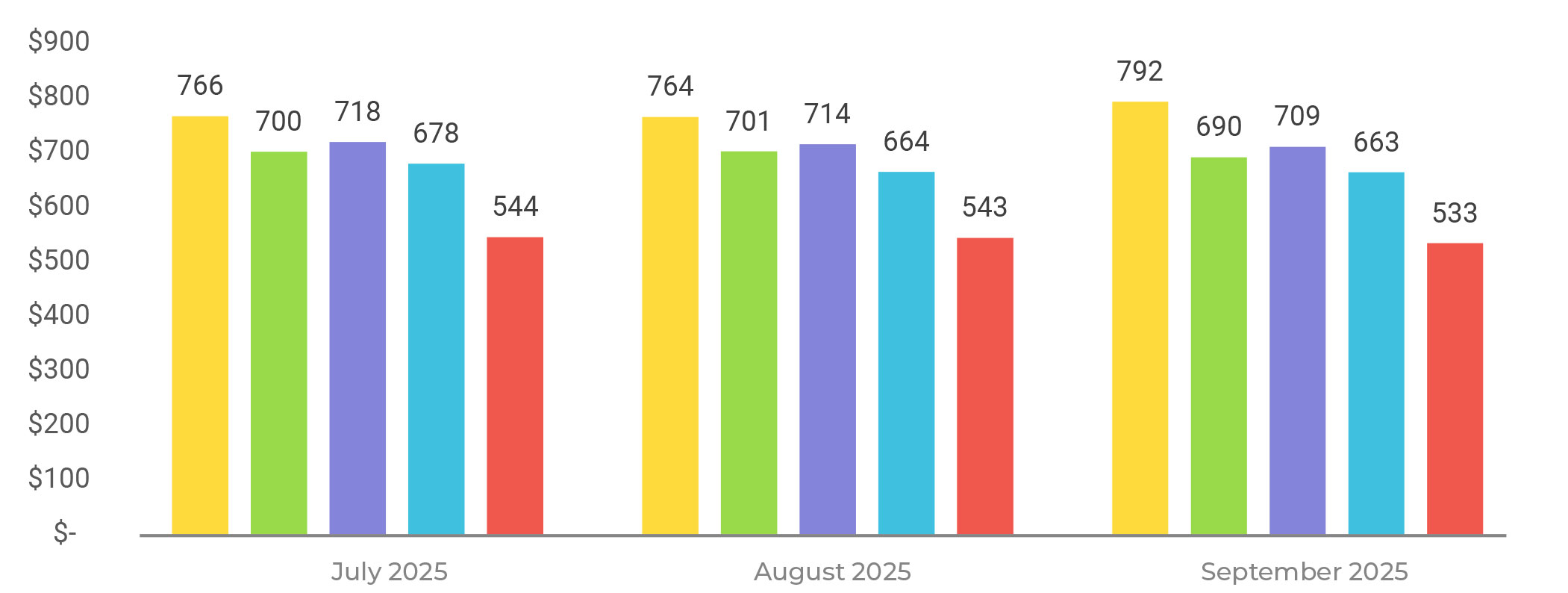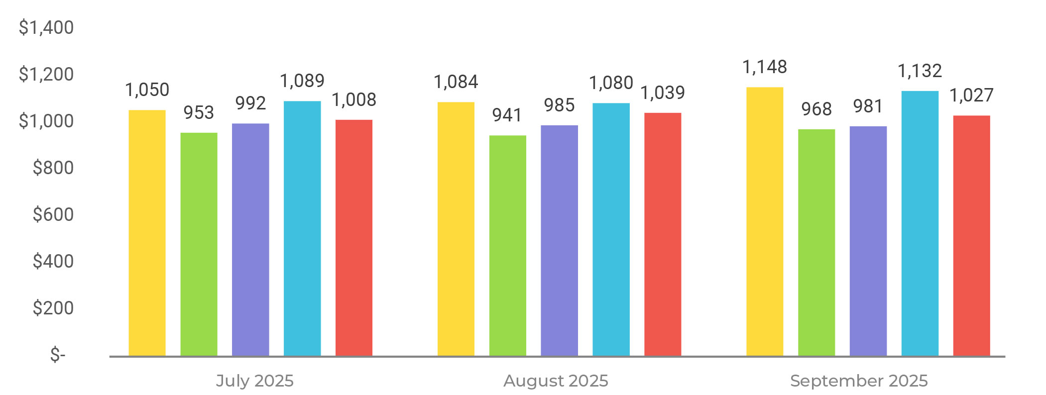 The Decisiv Commercial Vehicle Service Analysis Report illustrates how parts and labor costs vary between four U.S. regions and Canada. In Q3 2025, the regional rankings continued to show that combined parts and labor costs are highest in the West and lowest in Canada.