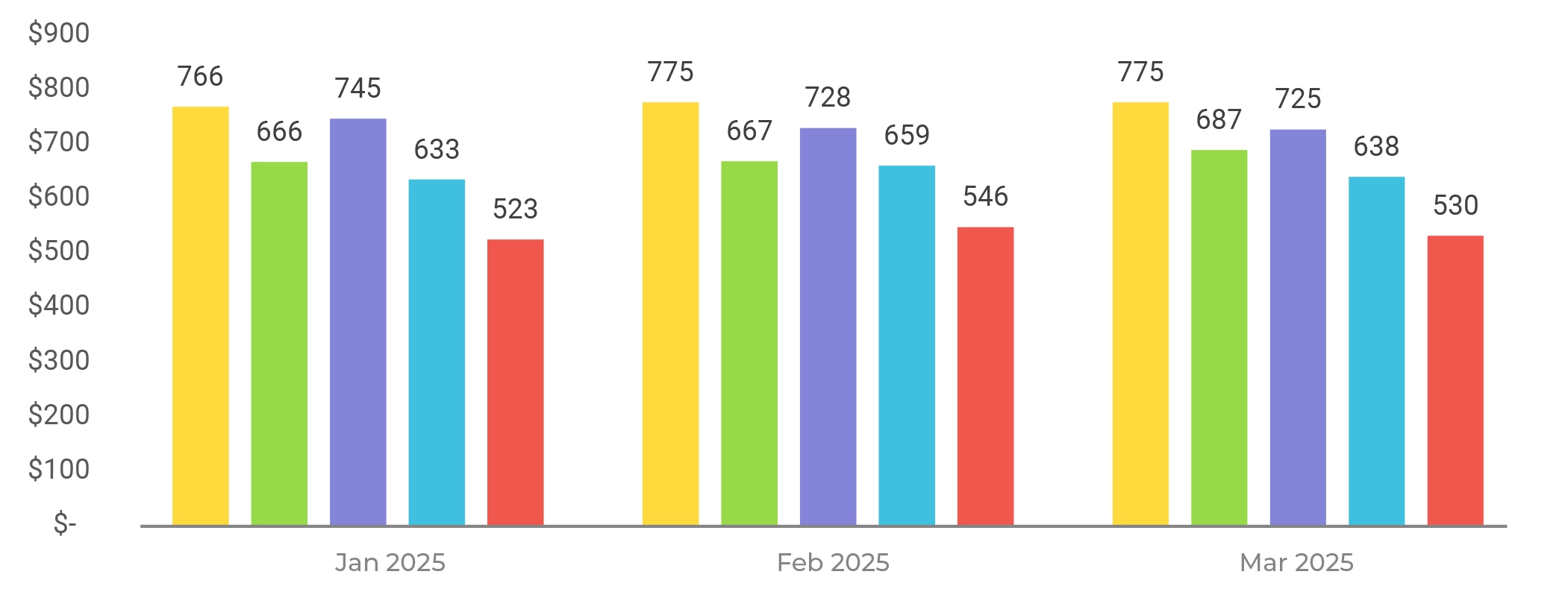 The Decisiv TMC Benchmark Report illustrates how parts and labor costs vary between four U.S. regions and Canada. In Q1 2025, the regional rankings were unchanged from the previous two quarters. In the latest analysis, combined parts and labor costs were highest in the West, followed by the South and Northeast. Costs in the Midwest were fourth highest among U.S. regions, followed by Canada where the lowest combined expenses are seen in the quarterly regional data.