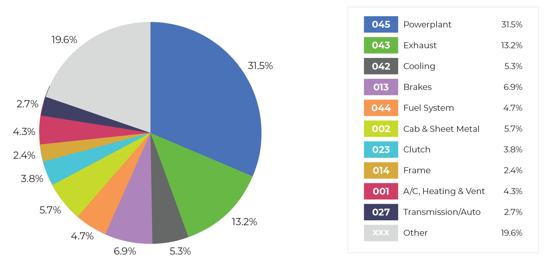 Combined parts and labor cost increases in Q2 2025 were seen in 17 of the 25 VMRS Systems tracked in the Decisiv Commercial Vehicle Service Analysis Report, six more than in the previous quarter. VMRS Systems with the highest quarterly increases in combined costs included Steering (13.8%), Power Take Off (11.7%), Tires (7.8%), Air Conditioning, Heating, and Ventilating System (4.4%), and Drive Shaft(s) at 3.8%. Only Drive Shaft(s) were among the systems with the highest combined cost increases in the two most recent quarters.