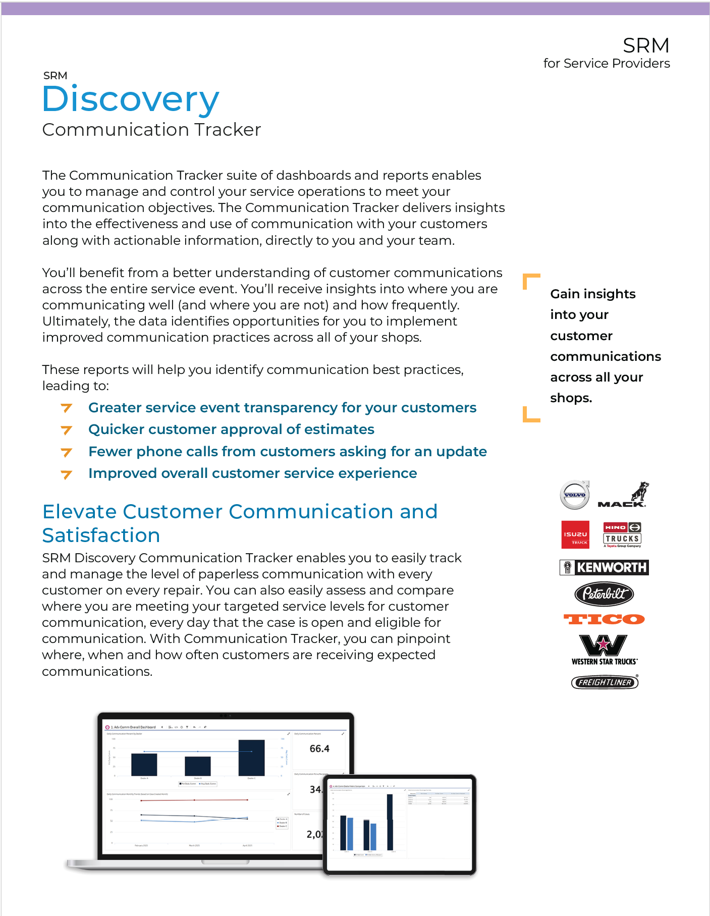 Great news for all Decisiv SRM platform users. You now have access to the no cost Communication Tracker Starter. A management dashboard that provide an overview of your service performance. Simply click here to get immediate access to your Communication Tracker Starter dashboard within SRM Insite.